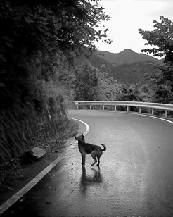 霧雨の中。