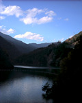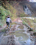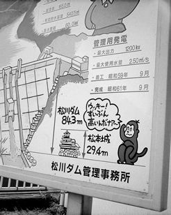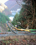 調子に乗ると、あわや転落(向こうに見えるのが松川ダム)